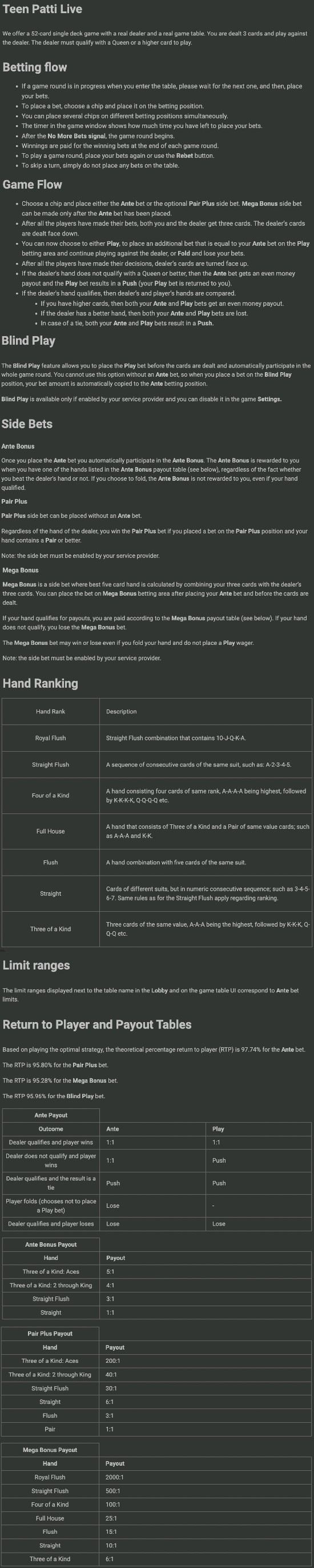 [ VERBATIM FROM CASINO RULES PAGE...]